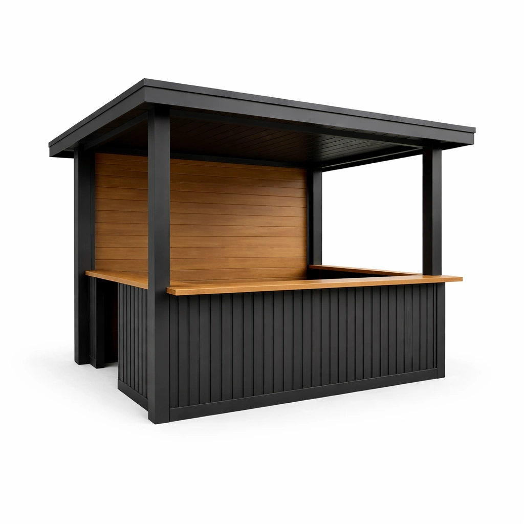 Bar de jardín de acero y madera pintada en negro y natural